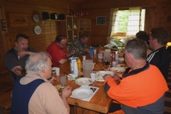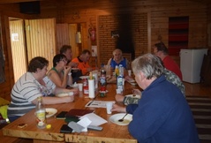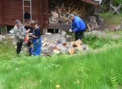Yllä pyörii diaesitys Marjarinteen talkoista