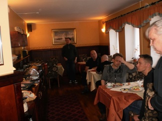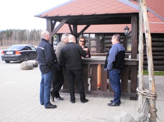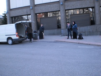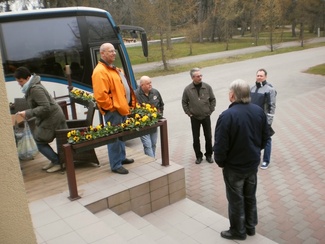 Yhdistyksen matka Pärnuun alkoi Espoon valtuustotalolta perjantaina noin kello kuusi.